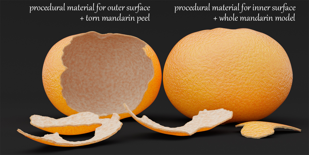 Procedural Material And Models For Mandarin Slices And Peel. Blender 3d. Cycles 2.82.